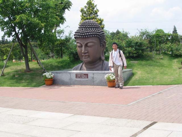 無事到着し、大仏について説明書きを読んでいると、「高さ120m(ギネスに載ってる) 平成5年に完成し・・大仏胎内を含む全ての拝観800円」