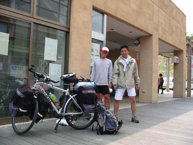 道の駅「ならは」に到着し、テントを張れそうな所を探していると、あ、旅人だ!しかも自転車!